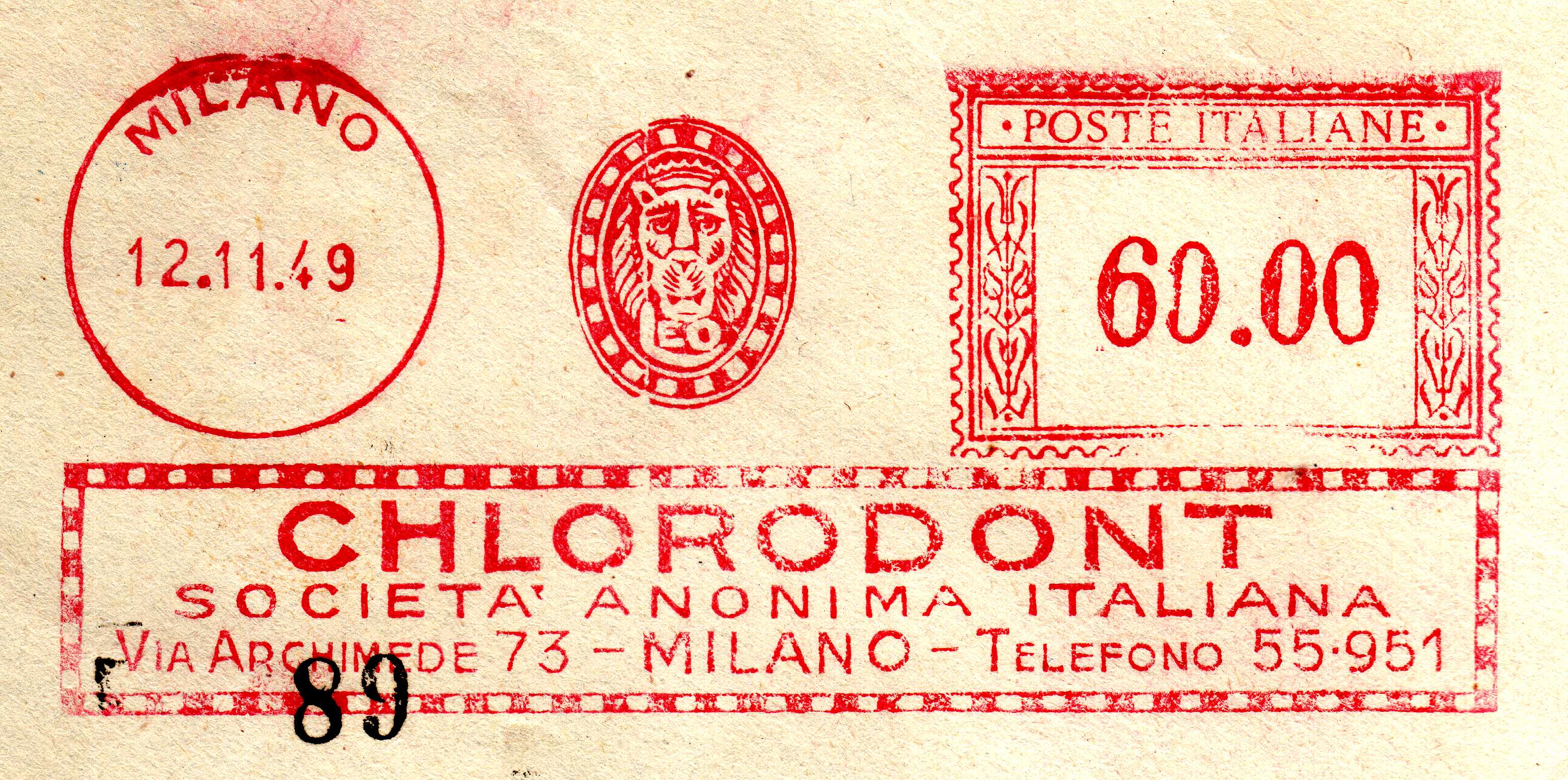 Affrancatura utilizzata in data 12 novembre 1949 a Milano