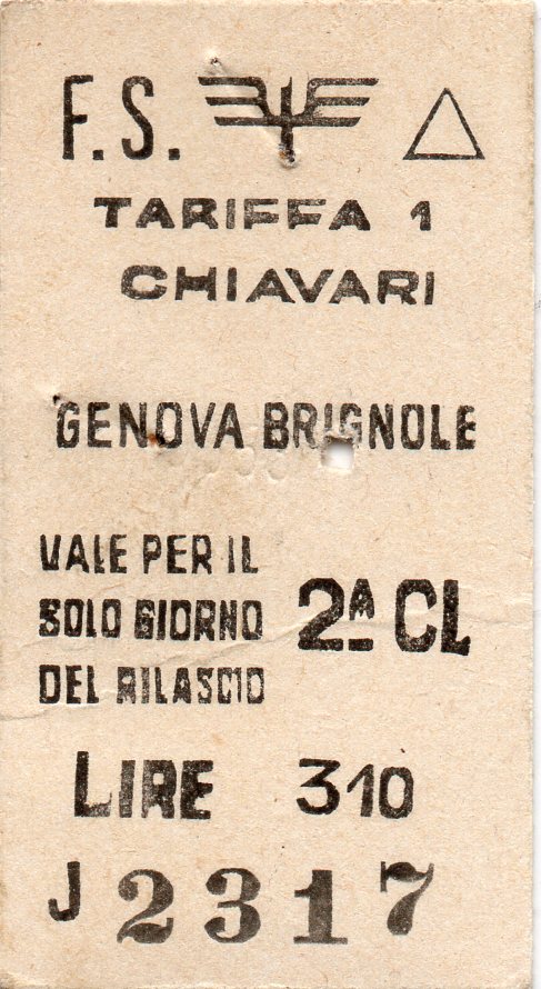 TARIFFA 1 CHIAVARI GENOVA BRIGNOLE