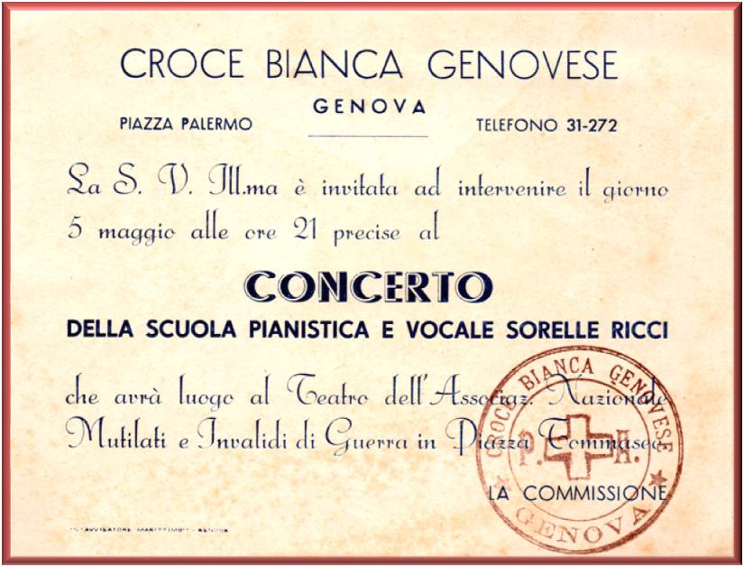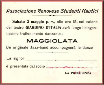 Biglietto di invito alla presentazione del programma, tenuto al teatro Gratacielo di Genova, alle ore 10 del 17 c.m., purtroppo non è scritto l'anno, dovrebbe essere tra il 1946 e il 1950.