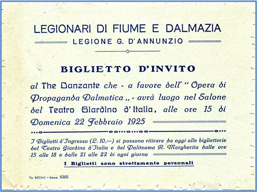 A favore Dell'Opera di Propaganda Dalmatica, orgaizzata dalla Legione G.D'Annunzio
