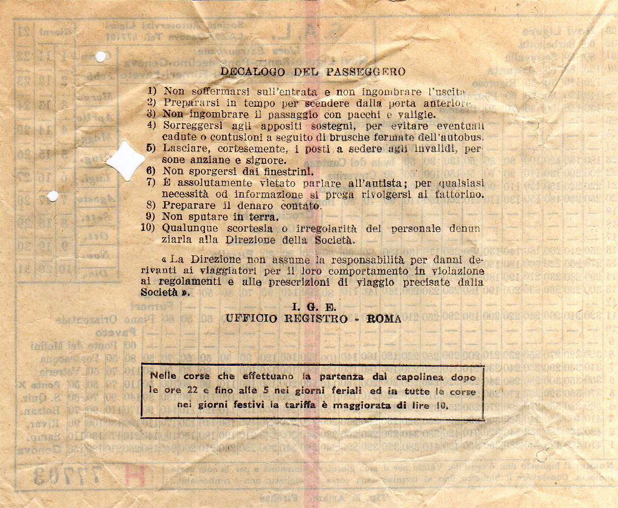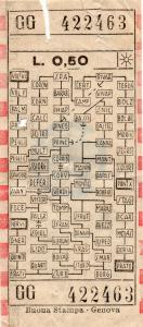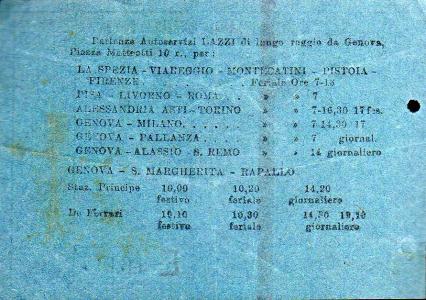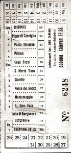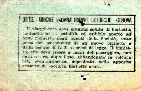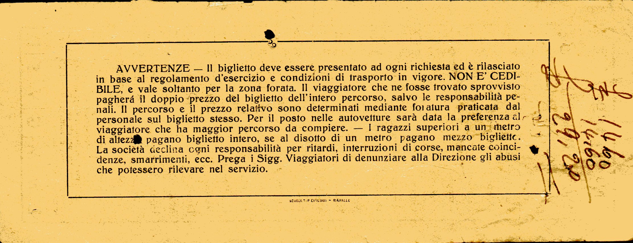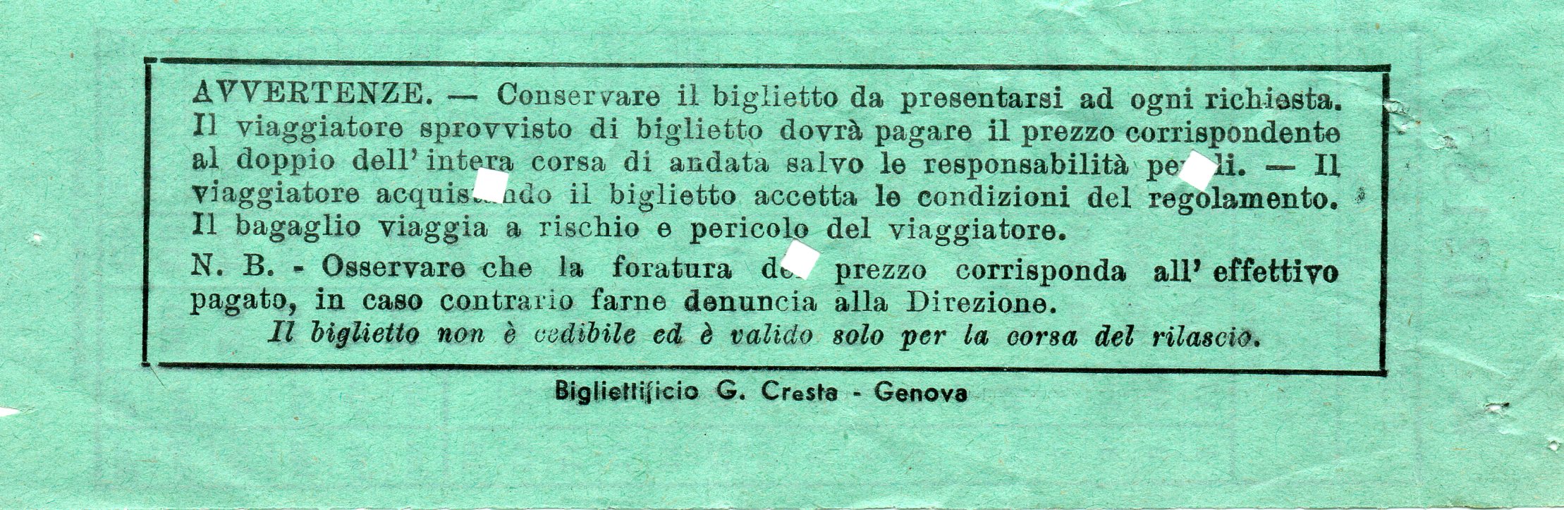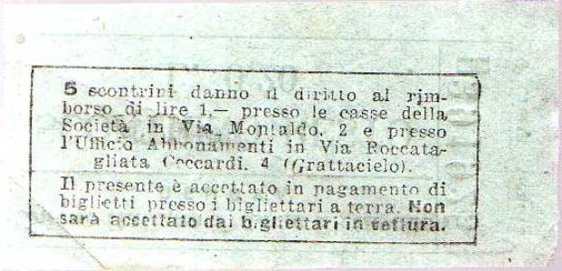 Nella parte posteriore del biglietto, con le pubblicità: "MANNITE DUFOUR" e "Biscottificio "DELFINO", identiche al biglietto precedente