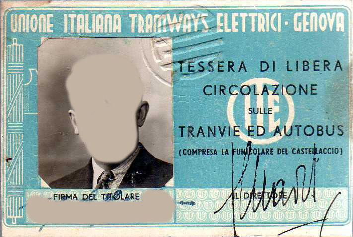 Tessera speciale di libera circolazione sulle tranvie ed autobus (compresa la funicolare del castellaccio) in dotazione ai dirigenti.