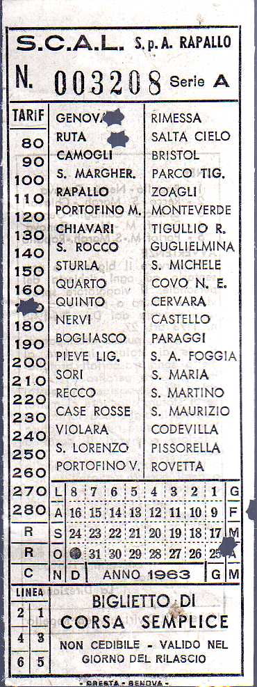 A differenza degli altri biglietti, vi sono inseriti i giorni e i mesi dell'anno, vi sono altri numeri nella parte inferiore di cui no conosco il significato.