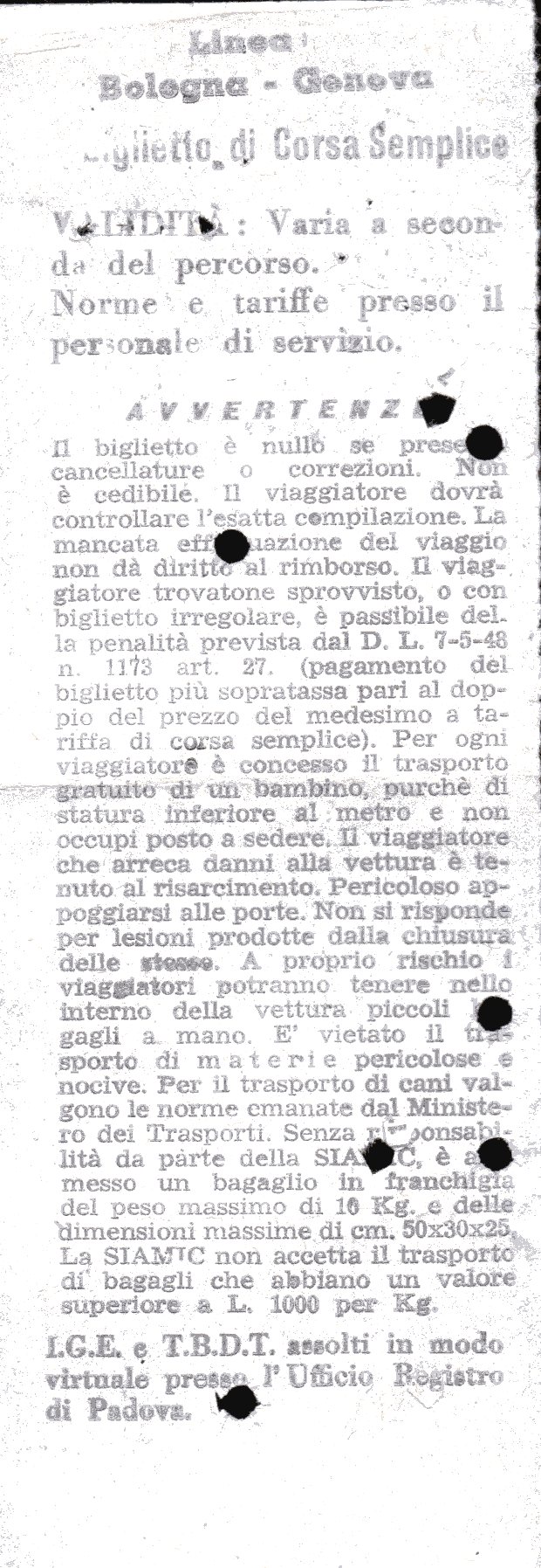 Biglietto particolare, veniva utilizzato come resto in mancanza di spiccioli, si legge nel retro le condizioni generali.
