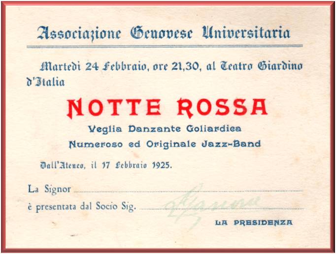Martedì 24 febbraio 1925, ore 21,30, al Teatro Giardino d'Italia