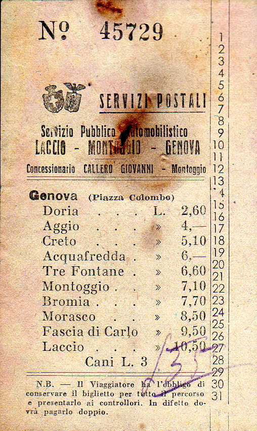 Interessante la tariffa per i cani, fissata in lire 3