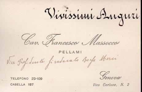 Cav. Francesco Massocco Pellami-Vice Presidente sindacale Borsa Merci Vico Carlone, n°2-Genova