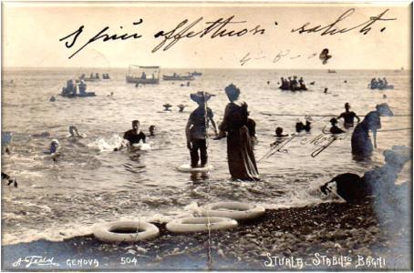 Cartolina fotografica dello stabilimento balneare di Sturla, viaggiata in data 4 agosto 1904.