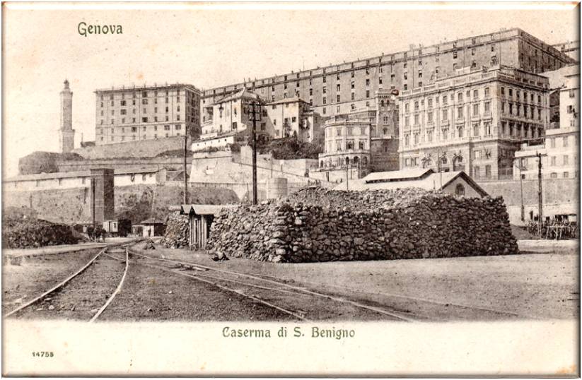 Veduta insolita della caserma di S.Benigno e del raccordo ferroviario del porto.