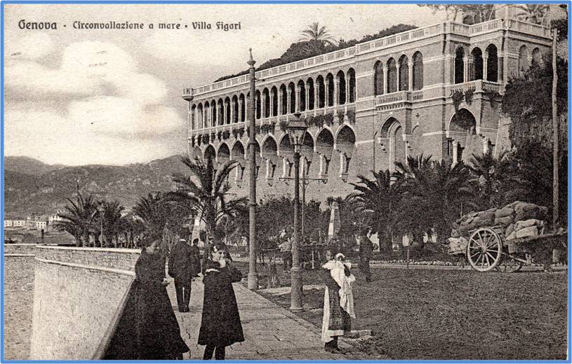 Immagine dei primi anni del 900 non è ancora ultimata la villa Milius poi Figari, e sono visibili i paracarri situati lungo il marciapiedi.