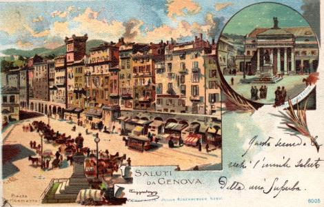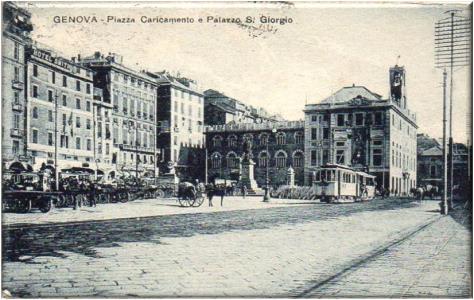 Piazza Caricamento, cartolina viaggiata in data 27 dicembre 1921, da Genova per Trieste.