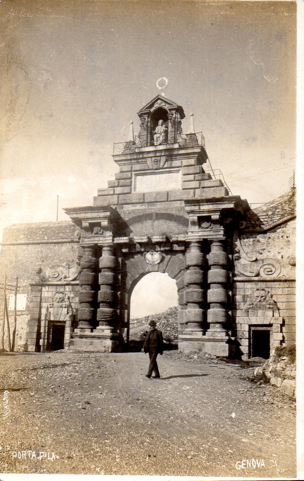 Senza addentrarsi troppo, alcuni ill'ustri personaggi come Francesco Podestà, il Campora e anche il D'Andrade sostenevano che non fu già Porta Pila, ma Porta Romana che venne rivestita delle spoglie di quella di Porto Maurizio, questa porta che si trovava all'ingresso di via S.Vincenzo è stata totalmente demolita e i resti gettati in discarica.