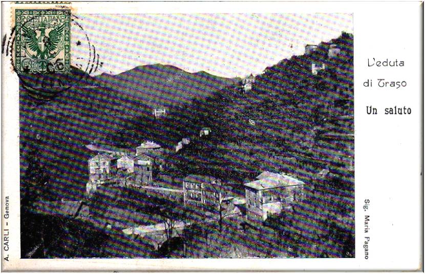 Cartolina antica di Traso, spedita da Lavagna come testimonia il timbro postale in data 8 settembre 1906.