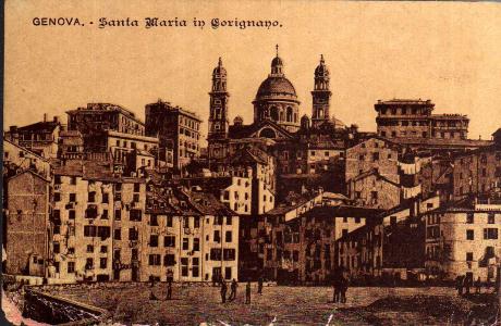 Cartolina viaggiata in data 22 agosto 1921 indirizzata in un anticolo vicolo di Genova "vico Pomogranata".
