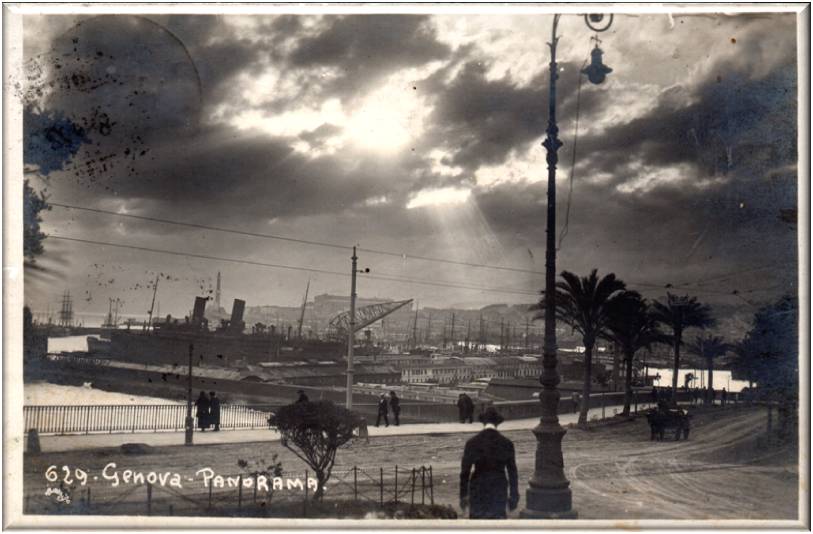 Cartolina fotografica viaggiata in data 8 agosto 1922 da Genova a Perrero (Torino).