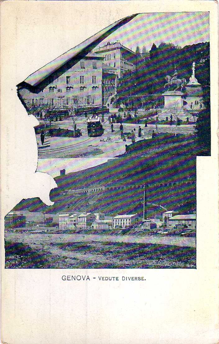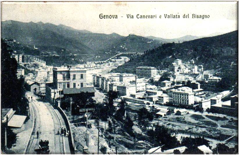 La dicitura sulla cartolina che indica via Canevari è sbagliata, le strade che si vedono nella cartolina sono: via Montaldo, via Bobbio e via del Piano.