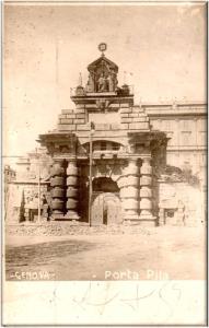 Questa porta fatta a modo di arco trionfale, è un bel monumento d'architettura. Nessuna città italiana , compresa Roma, può vantare porte antiche così belle, come questa e quella della Lanterna, ora dai vandali distrutta. Firenze sola, ne possiede una simile, detta Porta S. Gallo, che nella recente demolizione delle sue mura volle conservata, e la isolò, facendole passare ai due lati due grandi strade per le vetture.