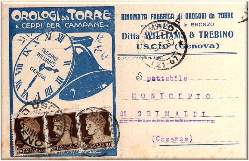Cartolina vg. in data 9 maggio 1930 da Uscio per Cosenza.