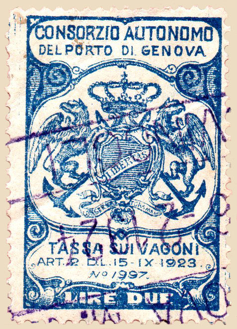 Marca per Tassa sui Vagoni emessa in base al D.L. del 15 settembre 1923 n°1997.