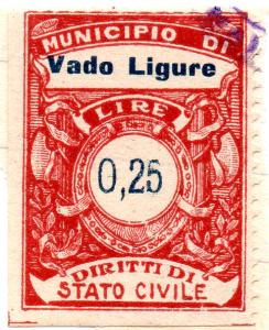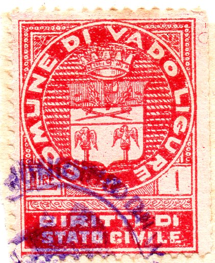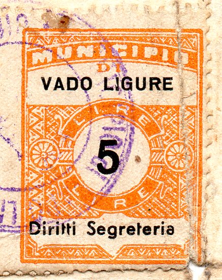 Sulla marca non vi è nessun riferimento al comune di Vado Ligure, ma è stata staccata da un certificato emesso da questo comune, in data 1 gennaio 1948.