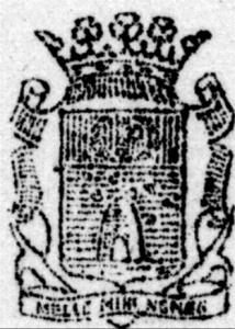 Stemma comunale di Mele, nella parte superiore il simbolo del Capo del Littorio.