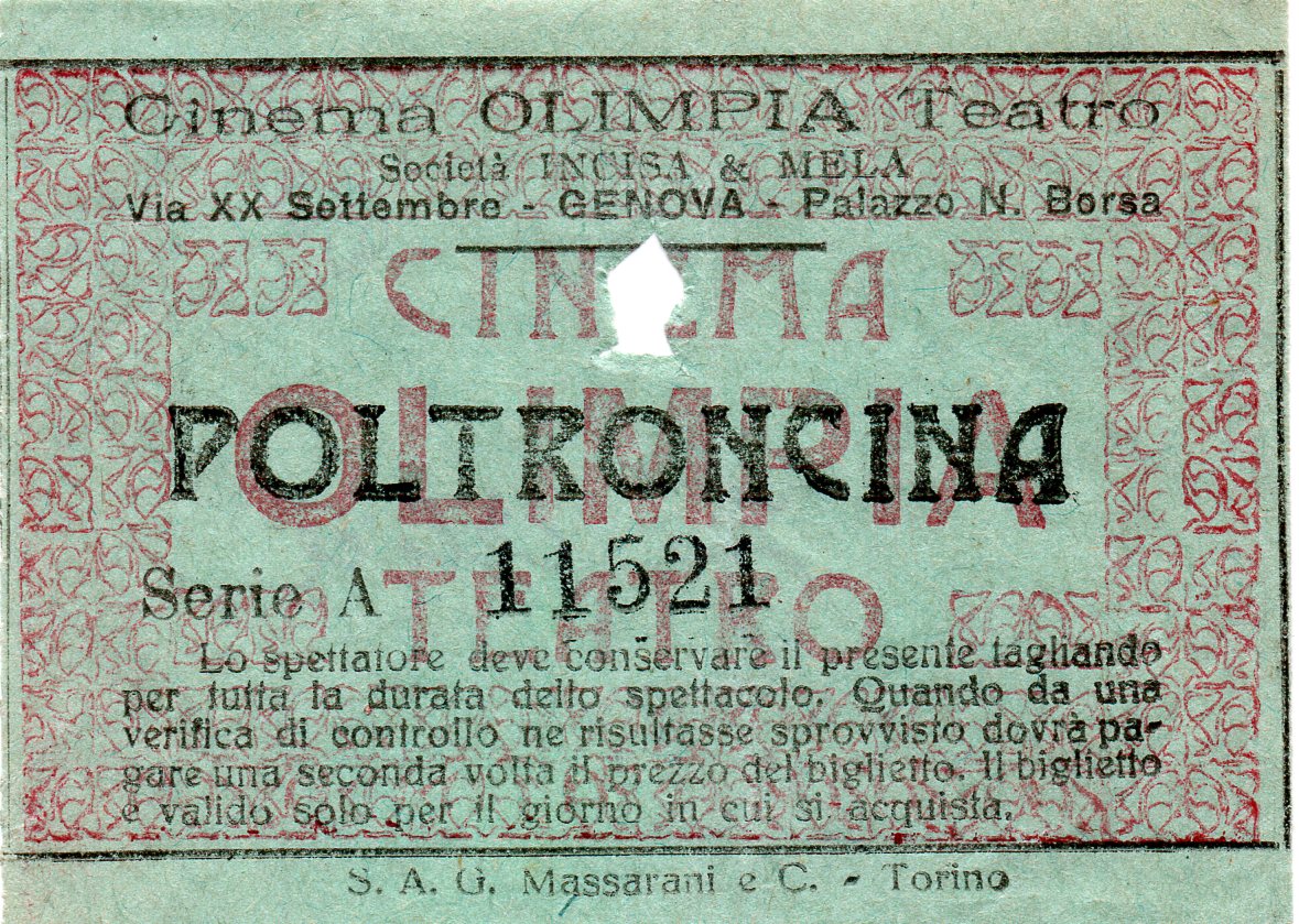 Cinema Teatro Olimpia Via XX Settembre palazzo della Borsa.
