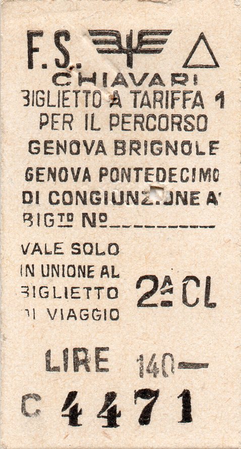 TARIFFA 1 CHIAVARI GENOVA BRIGNOLE