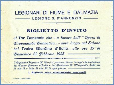 A favore Dell'Opera di Propaganda Dalmatica, orgaizzata dalla Legione G.D'Annunzio