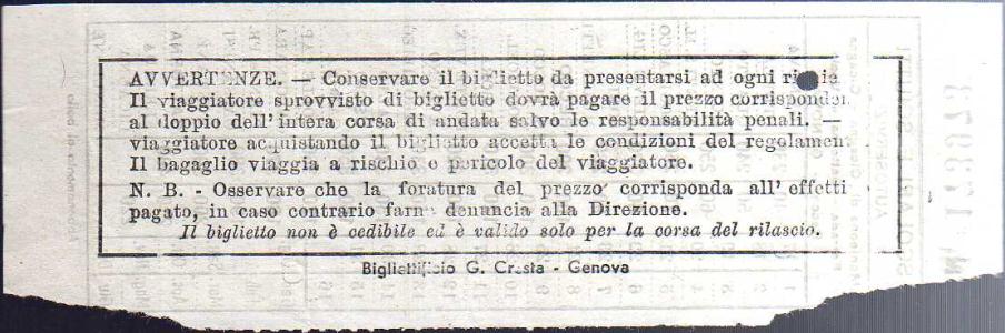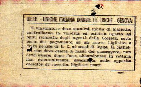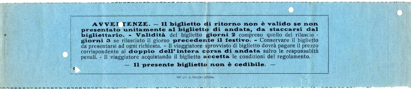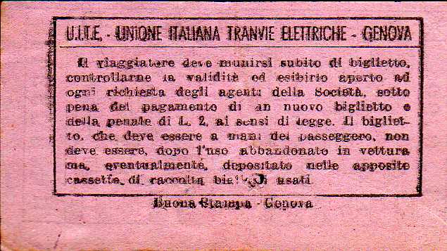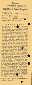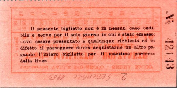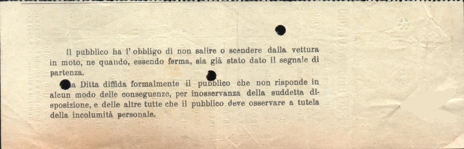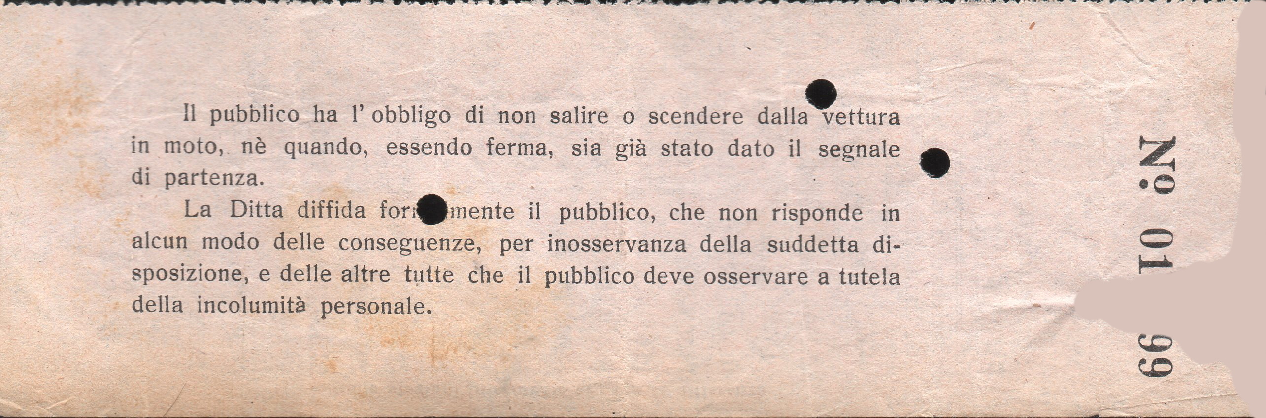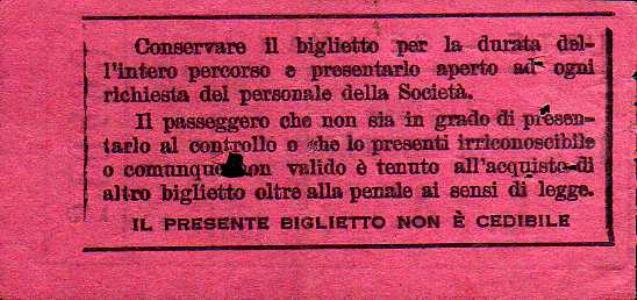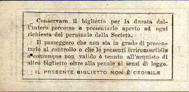 Nella parte posteriore del biglietto, con le pubblicità: "MANNITE DUFOUR" e "Biscottificio "DELFINO", identiche al biglietto precedente