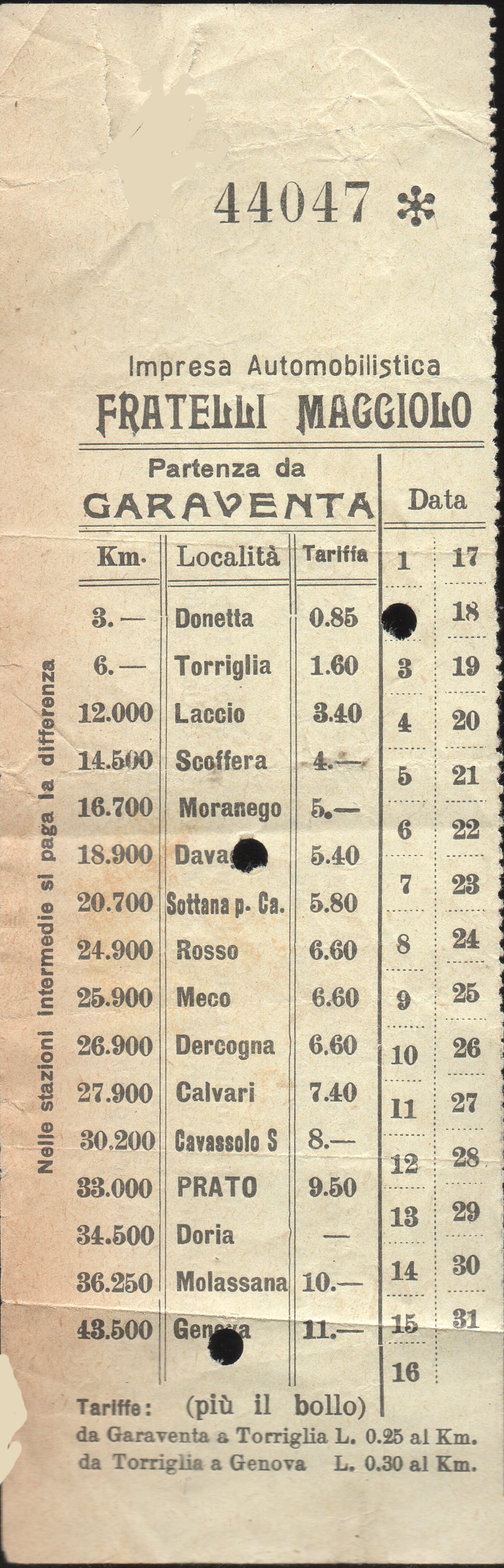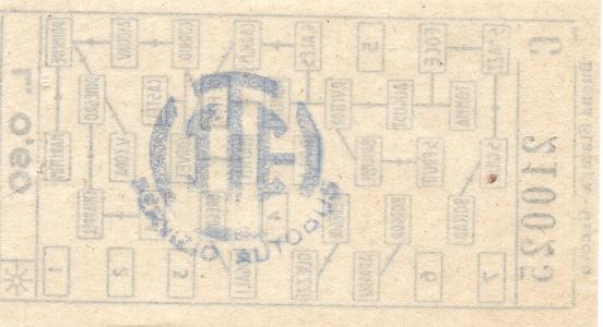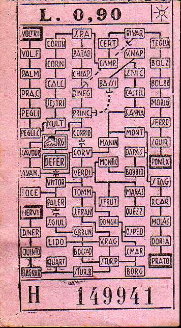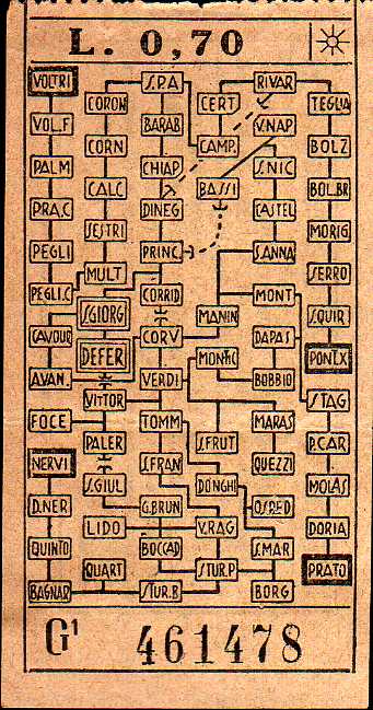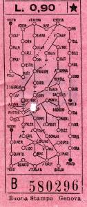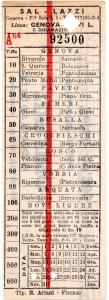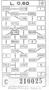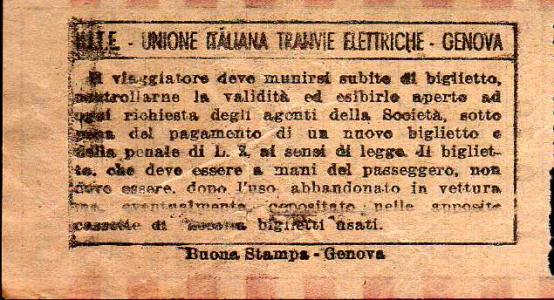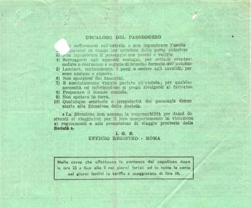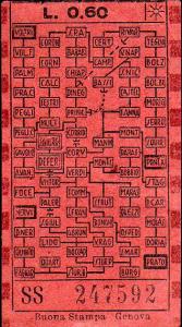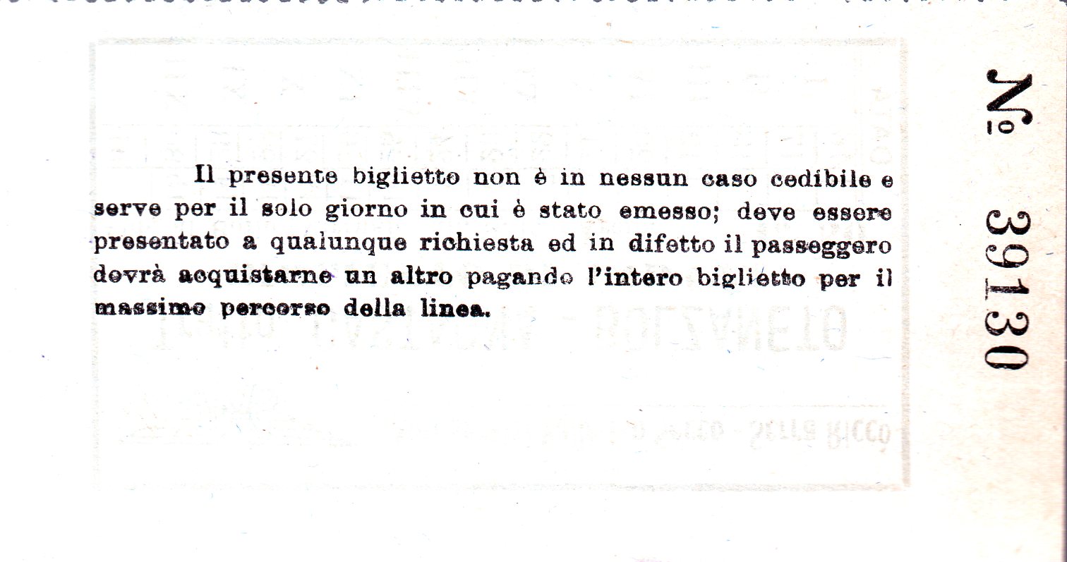 Nella parte posteriore del biglietto, con le pubblicità: "MANNITE DUFOUR" e "Biscottificio "DELFINO", identiche al biglietto precedente