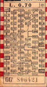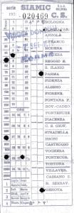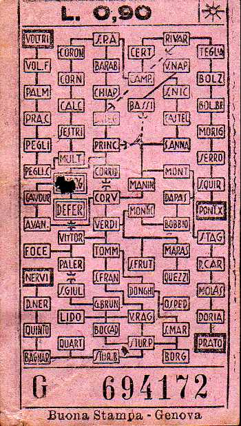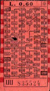 Nella parte posteriore del biglietto, con le pubblicità:del "Biscottificio "DELFINO"