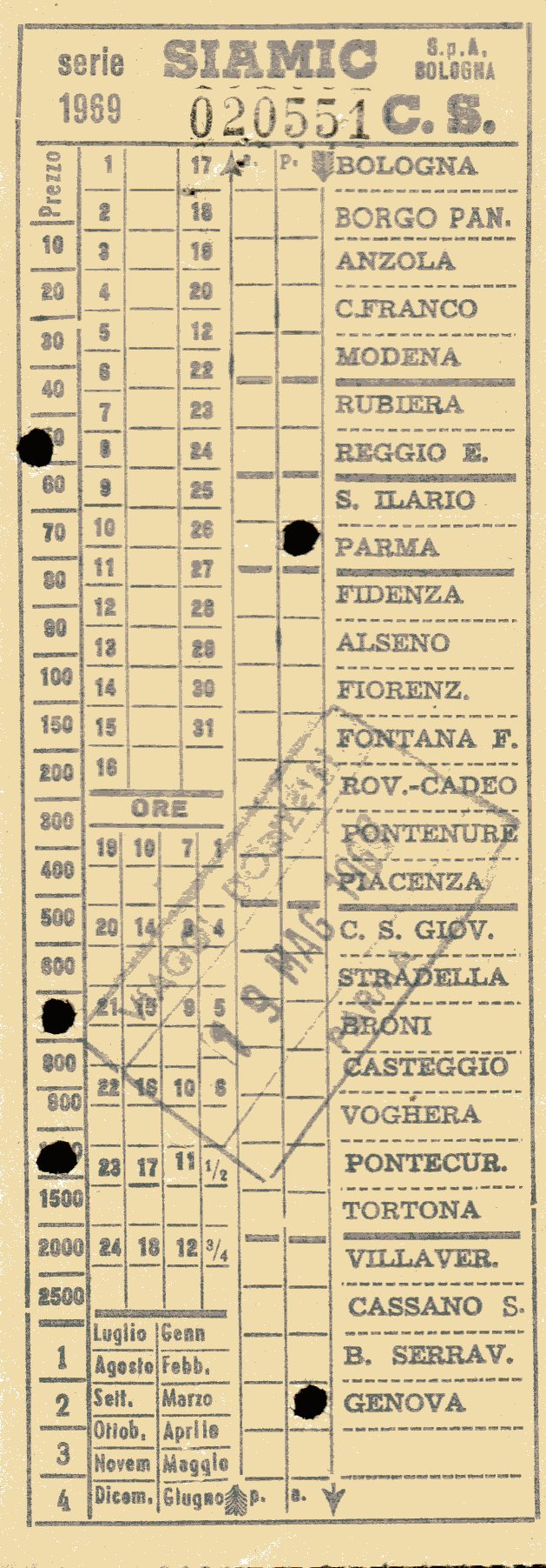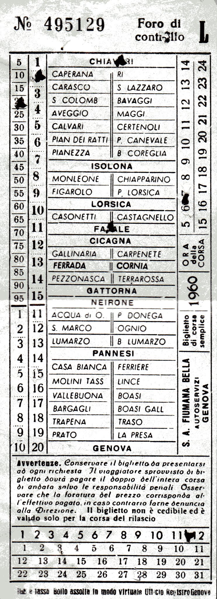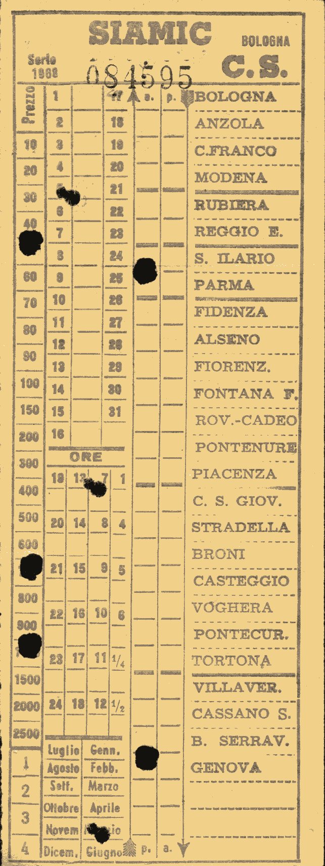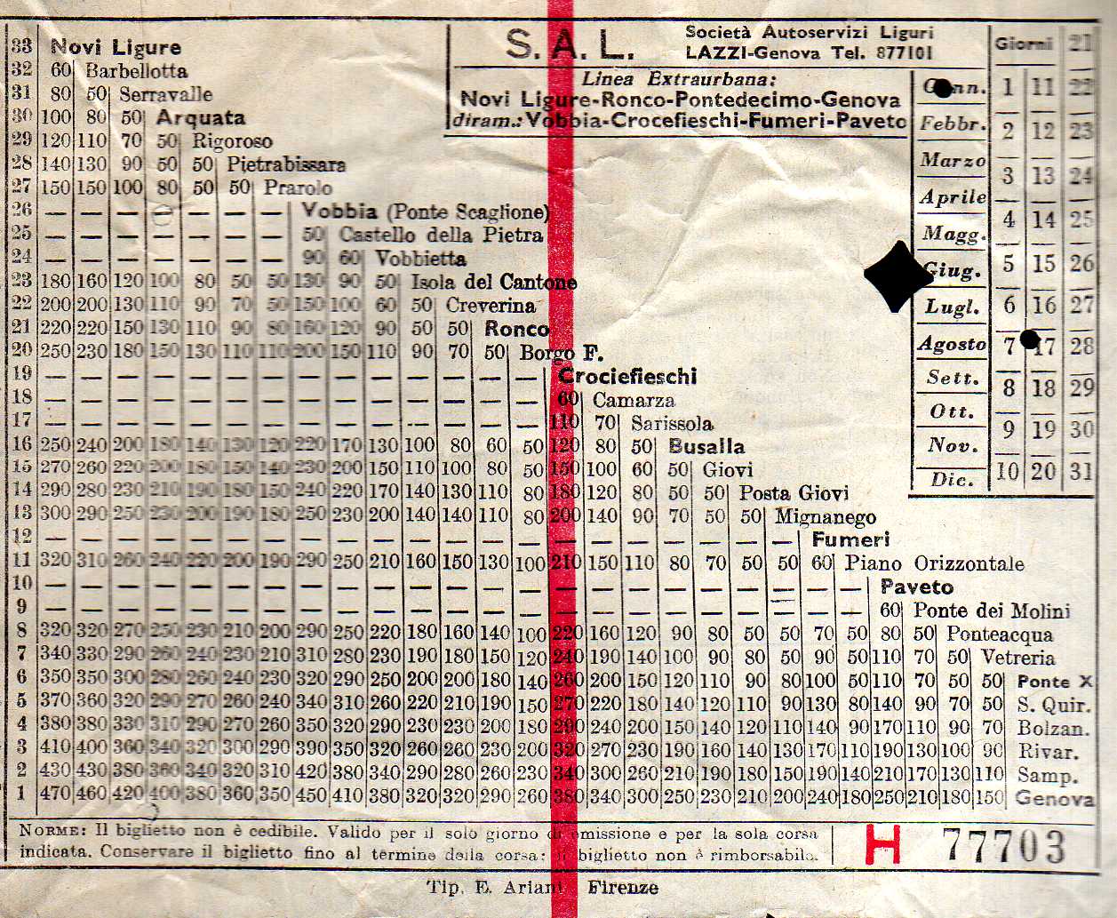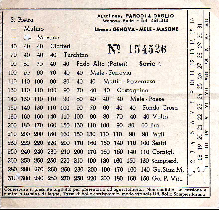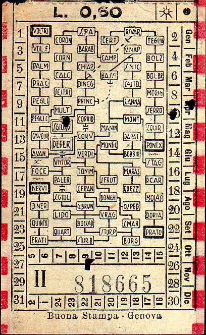A differenza degli altri biglietti, vi sono inseriti i giorni e i mesi dell'anno, vi sono altri numeri nella parte inferiore di cui no conosco il significato.
