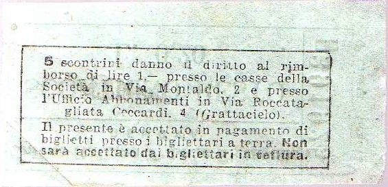 Biglietto particolare, veniva utilizzato come resto in mancanza di spiccioli, si legge nel retro le condizioni generali.