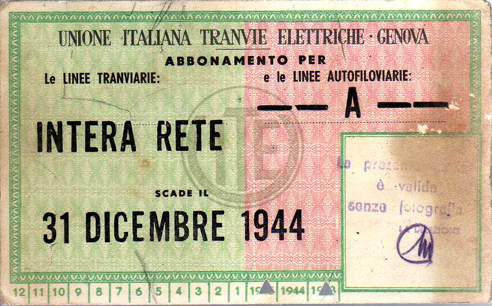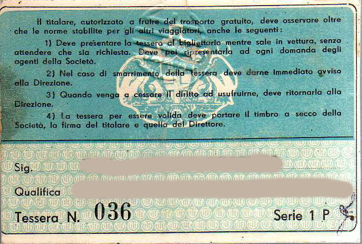 Tessera speciale di libera circolazione sulle tranvie ed autobus (compresa la funicolare del castellaccio) in dotazione ai dirigenti.
