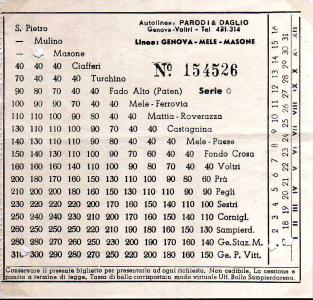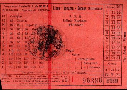 Biglietto utilizzato in data 27 luglio 1950 da Cogoleto a Sestri