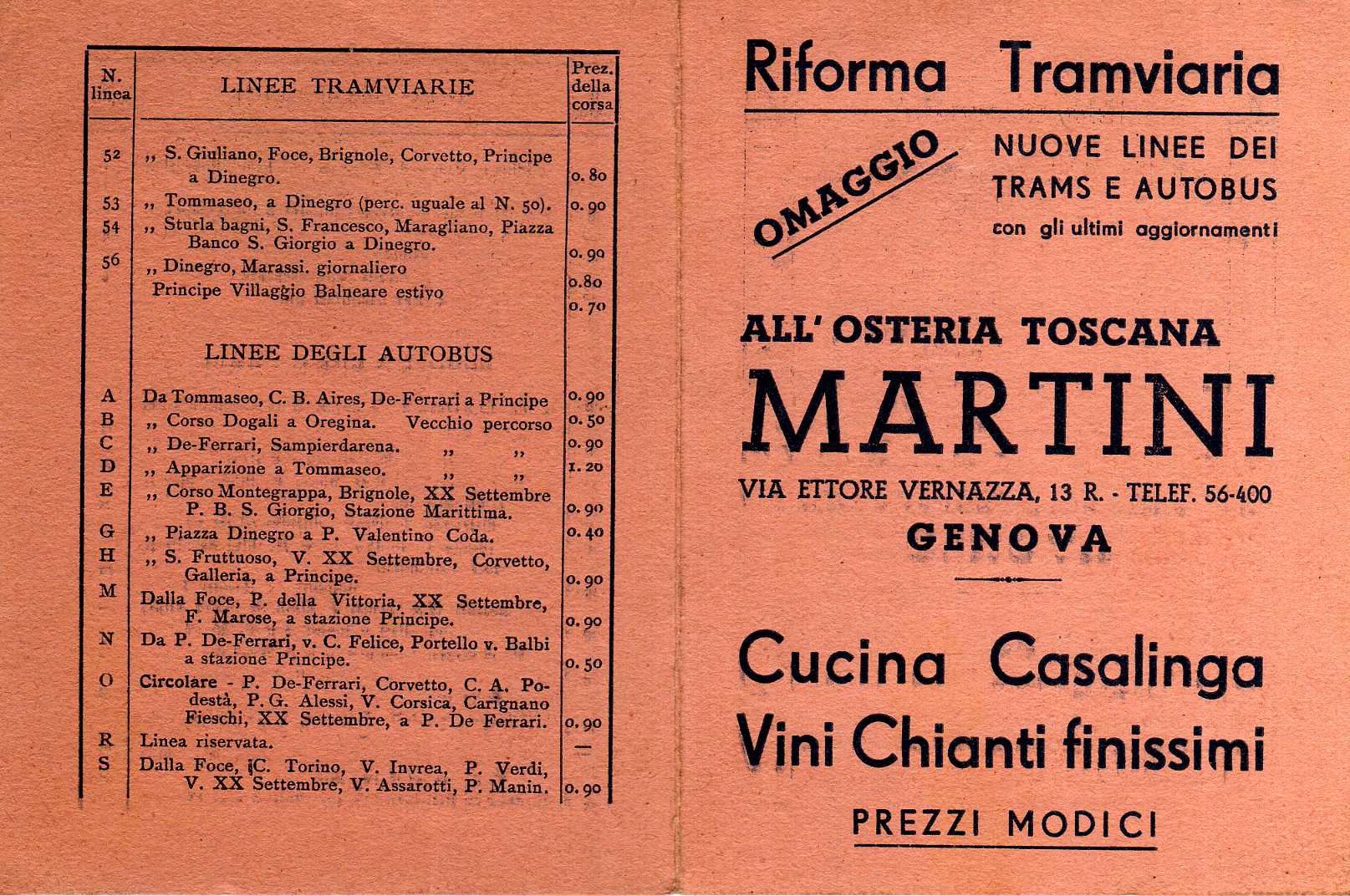 Opuscolo pubblicitario dell'Osteria Toscana, situata in via E. Vernazza.