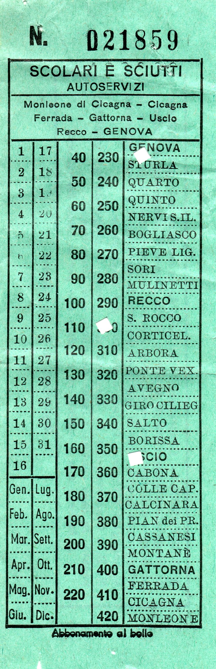 1° di autorizzare l'acquisto dalla ditta G.Massarani e C. di Torino dei seguenti quantitativi di biglietti occorrenti per il servizio degli autobus municipali, presunto fabbisogno per tutto l'anno 1922, al prezzo di L. 0,50 per blocchetto di 250 biglietti: