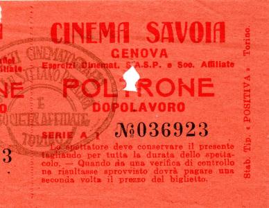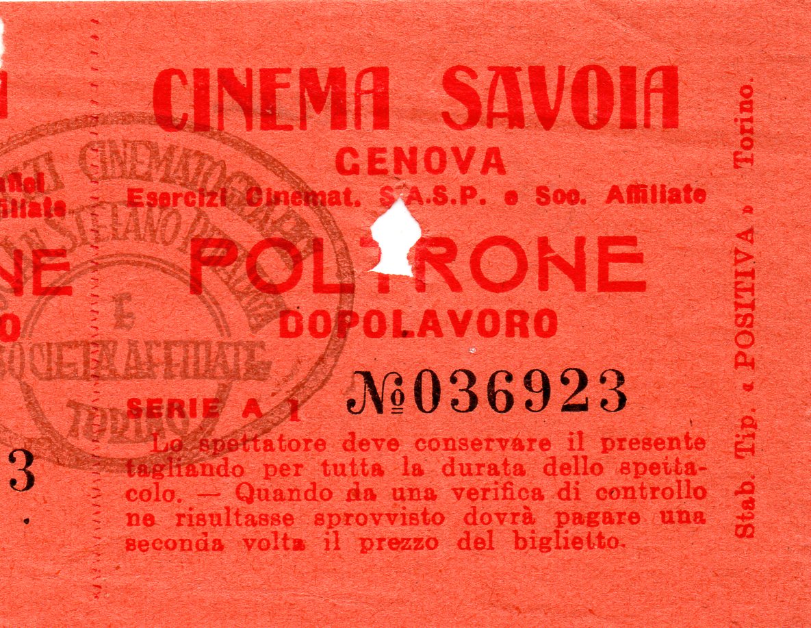 Nel retro del biglietto vi è una nota scritta probabilmente dall'utilizzatore del biglietto che ci permette di risalire alla data precisa ed allo spettacolo che era stato proiettato quel giorno.