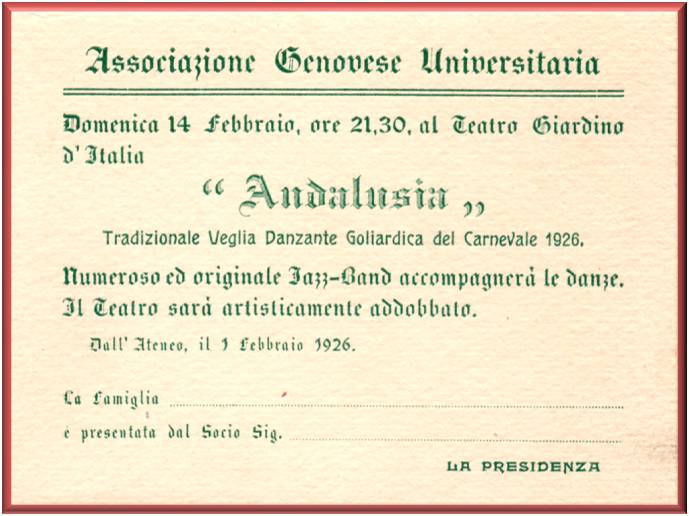 Tradizionale Veglia Danzante Goliardica del Carnevale 1926