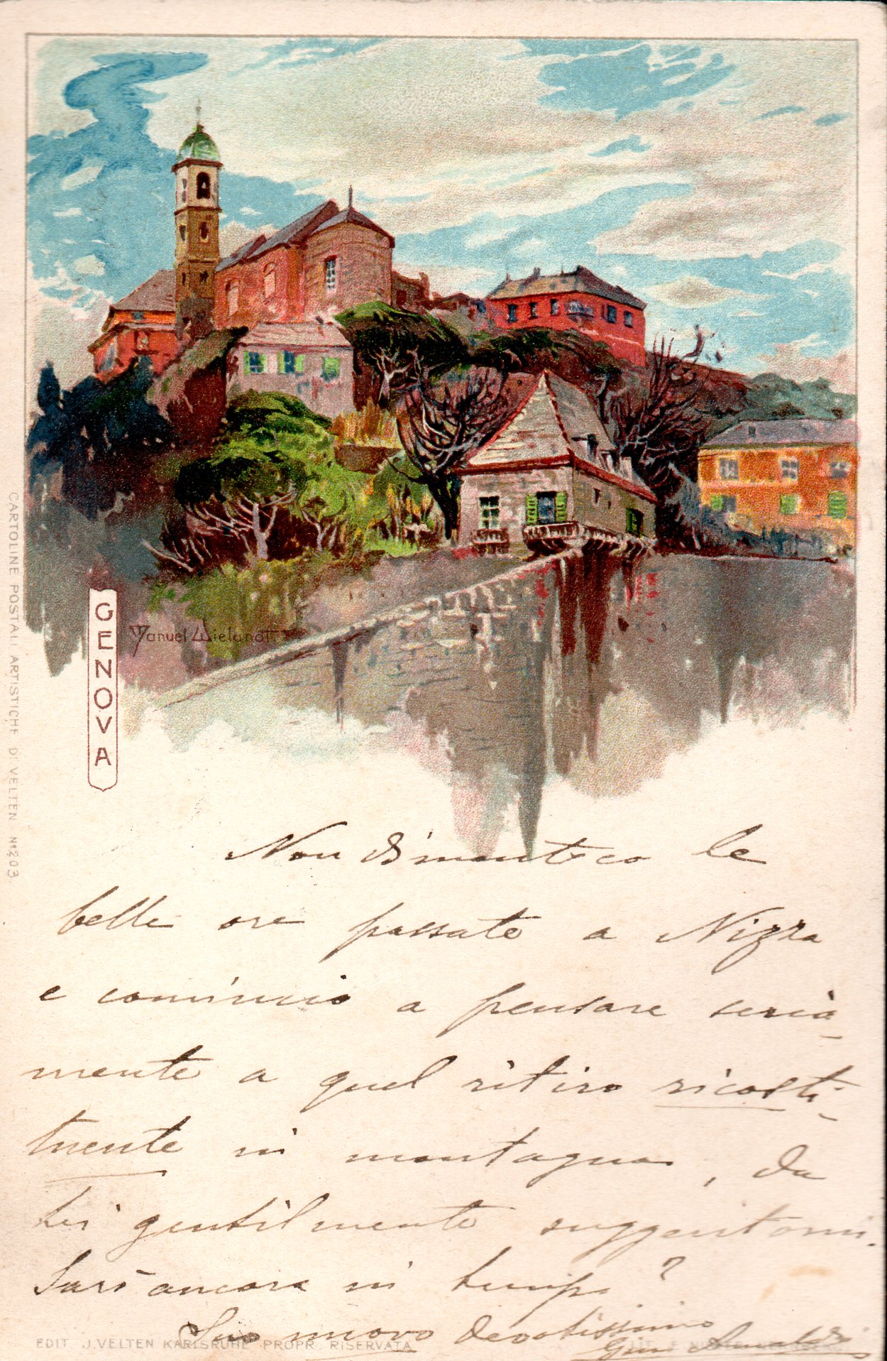 Bella cartolina artistica, viaggiata in data 29 ottobre 1927, con destinazione Genova Sestri.