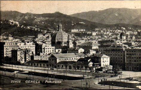 Cartolina nv. la foto dovrebbe collocarsi intorno al 1928 la copertura del Bisagno è in fase terminale, ci sono ancora in piedi alcuni vecchi capannoni che presto lasceranno il posto ai nuovi palazzi.