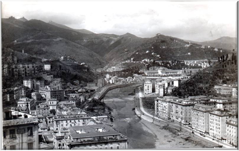 Immagine della zona di S.Bartolomeo in Valbisagno, nel fondo si vedono le case popolari costruite nel ventennio.