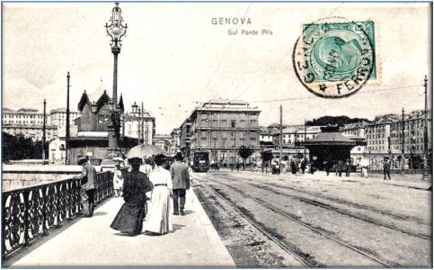 Si vedono dei tendoni nella piazza di Francia così chiamata all'ora quella che oggi è piazza della Vittoria, a sinistra il ponte Pila, mentre sul fondo a destra tra gli alberi si intravvede l'ex macello civico poi trasferito a Ca de Pittà.