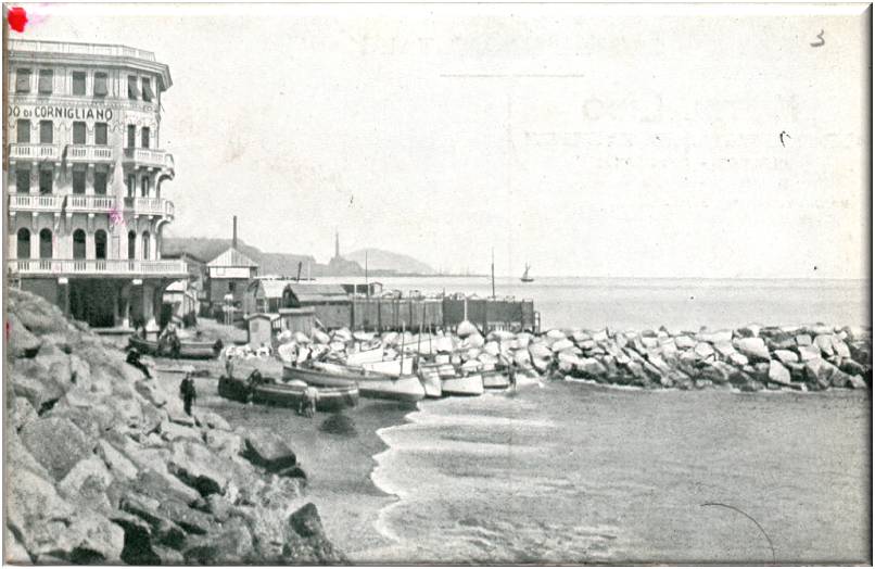 Cartolina fotografica della spiaggia dell'Hotel Lido di Cornigliano Ligure.