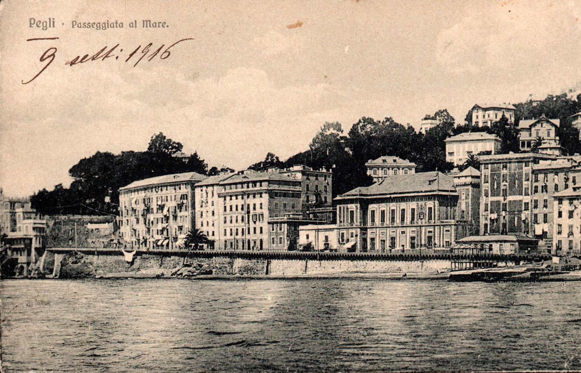 Pegli, cartolina riproducente la passeggiata al Mare. Cartolina viaggiata, in data 3 marzo 1916 Ediz. Menchi Germano-Pegli. Alb.2 Sc.4 P.5
