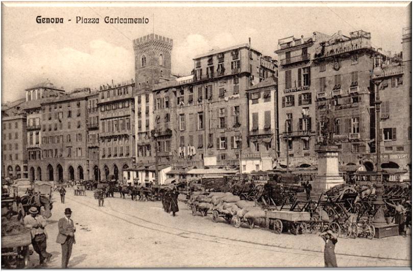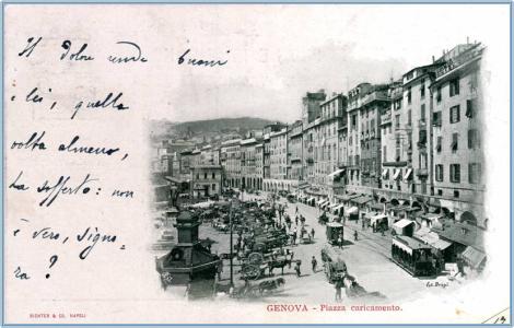Piazza Caricamento, cartolina viaggiata in data 27 dicembre 1921, da Genova per Trieste.