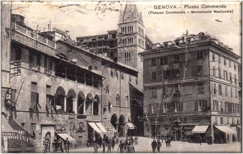 Piazza Commenda, cartolina viaggiata in data 4 febbraio 1927, da Genova a Cherasco (Cuneo).