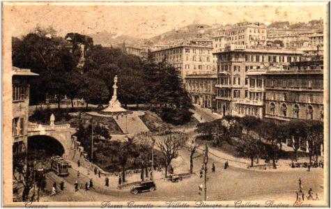 Cartolina fotografica viaggiata di Piazza Corvetto in data 15 aprile 1907