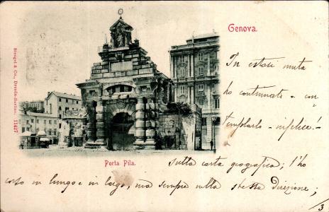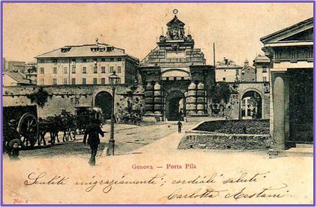 Porta Pila è un monumento storico, che ricorda le strette relazioni, che la repubblica genovese ebbe già coll'impero greco e la grande influenza che esercitava in Oriente. Giacchè fu detta Pila con greco nome, quando gli imperatori di Costantinopoli per gratitudine dei benefizi ricevuti dai Genovesi, regalarono ad essi il quartiere di Galata, che con quello di Pera e il corpo della città forma il porto di Costantinopoli, e la repubblica genovese in contraccambio assegnò ai greci il sobborgo di S. Vincenzo, e diede alla porta , che lo termina, il nome greco di Pila. Questo fatto spiega pure perchè una strada di questo sobborgo, abbia recentemente avuto il nome di Via Galata.