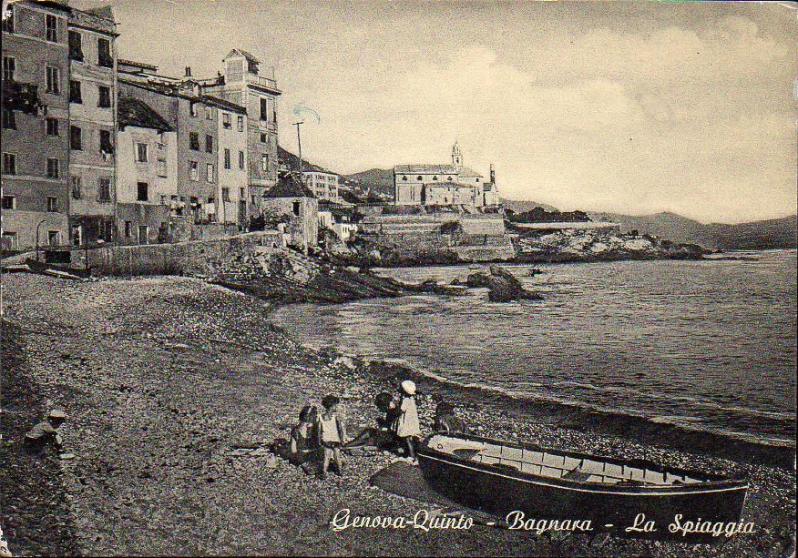 Cartolina fotografica della spiaggia di Quinto, viaggiata in data 15 giugno 1953.